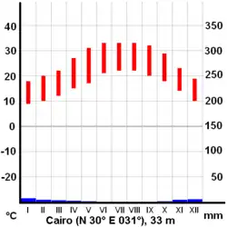 Počasí v Káhiře odpovídá kontinentální poloze města na rozhraní tropického a subtropického pásu ovlivněné blízkostí pouště. Nejvyšší letní denní teploty dosahují až ke 40 °C, v zimě minimální noční teploty klesají pod 10 °C. Srážkové úhrny jsou velmi nízké a intenzivní déšť v zimních měsících přichází pouze výjimečně. Zvláštností Káhirského počasí jsou tzv. chamsíny, které se vyskytují v průběhu března a dubna. Jedná se o větry vzniklé v důsledku změny vzdušného proudění nad pouští, kterými se do města dostává velmi horký pouštní vzduch s příměsí písku.
