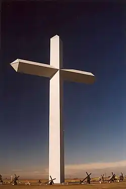 Kříž stojí na základně, která má připomínat Golgotu. |