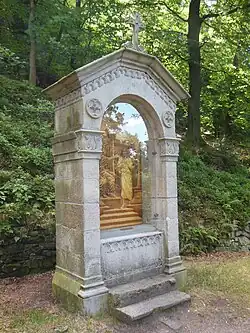 Součástí Křížové cesty byla kaple Božího hrobu, postavená v letech 1862 - 1863 na vrcholu za posledním zastavením. Byla to obdélná kamenná stavba s malým půlkruhovým apsidálním presbytářem, krytá plechovou sedlovou střechou. Vstupní západní průčelí kaple bývalo zakončeno trojúhelníkovým štítem s malou zděnou zvoničkou. Před vstupem do kaple byla přistavěna obdélná předsíňka s obdélným, polokruhově zakončeným vchodem. Podélné stěny kaple byly prolomeny po dvou úzkých, polokruhově zakončených oknech. Vnější stěny kaple byly hladké, bez členění. Kaple měla malý zvon, který byl ke konci 1. světové války zabrán a roztaven pro válečné účely. V říjnu 1923 byla v rámci elektrifikace křížové cesty do kaple zavedena elektřina a obstarán malý lustr. Po nuceném vysídlení německého obyvatelstva na konci 2. světové války nebyla již opuštěná kaple opravována a po roce 1950 se začala měnit v ruiny. Počátkem 21. století byla již kaple značně rozvalena. Dochovalo se pouze zdivo do výše přibližně 2,5 metru, lépe zachované na severní straně. Dne 30. června 2010 bylo rozhodnuto o demolici zbytků kaple, mezi červencem a zářím 2010 byly pozůstatky kaple strženy a trosky následně rozhrnuty po okolí.[3]
