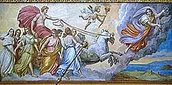 Interiér vily je bohatě zdoben štukovými a papírmašovými prvky. Ve třech sálech se dochovaly působivé nástropní malby od ústeckého malíře Josefa Reinera[1] z roku 1898 s mytologickými a přírodními náměty. Freska ve velkém sále je variací na slavnou římskou nástropní malbu Guida Reniho Aurora z tzv. Casina paláce Rospigliosi Pallavicini. Zachovala se také zdobená kachlová kamna a původní lustr.