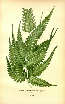2. a b c NAUMAN, Clifton E. Flora of North America: Pteris [online]. Dostupné online. (anglicky)
