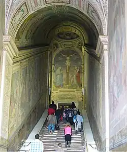 Řím je od středověku významným křesťanským poutním místem. Poutě do Říma mohou zahrnovat návštěvu velkého množství míst, a to jak na území Vatikánu, tak na území Itálie. Oblíbenou zastávkou jsou Svaté schody (it. Scala Santa): podle křesťanské tradice jde o schody, které vedly do pretoria Piláta Pontského v Jeruzalémě a na nichž stál Ježíš Kristus během svého umučení na cestě k soudu.[25] Schody údajně přivezla do Říma sv. Helena ve 4. století. Po staletí přitahovala Scala Santa křesťanské poutníky, kteří chtěli uctít Ježíšovo utrpení.