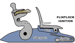 Jako křesací kámen býval používán obvykle pazourek. Křesací kámen musí držet v čelistech kohoutu a jeho pracovní část musí mít nejlépe ostrou hranu. Pazourek je vhodný kámen na kterém lze tuto hranu vytvořit relativně jednoduše. Kamínek může být používán na několik set výstřelů, ale musí být opakovaně ostřen. Pro daný účel lze použít i jiné nerosty, například achát. U něj je ale výroba potřebného tvaru složitější a tedy i dražší.