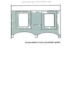 Rozsah omítkové vrstvy renesančního sgrafita Druhá etapa prací (dočištění povrchu sgrafita, povrchová fixáž, doplňky a retuše) byla provedena restaurátory Skořepou a Maškem v roce 1997 po dokončení stavebních úprav domu. V rámci této etapy oba restaurátoři provedli revizi hloubkového zpevnění omítek a dočistění reliéfu sgrafita. Omítky byly opakovaně napouštěny roztokem 5% hydroxidu barnatého a ztráty na omítkách byly vyplněny jádrem, stejně tak i ztráty na omítce v prvním patře. Defekty a peky byly vytmeleny, větší ztráty vyplněny napodobivou retuší. Kolem oken navrácených do původního formátu byly provedena rekonstrukce s tmavším odstínem intonaka, naproti tomu rekonstrukce mimo plochu dochované omítky byly pro odlišení provedeny pouze rytím bez intonaka. Na závěr byl proveden nátěr 5% akrylátovou disperzí a závěrečný hydrofobizační nátěr 3% roztokem včelího vosku a 1% polymerovaného oleje v lakovém benzínu[P 6][26][26]