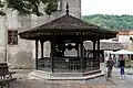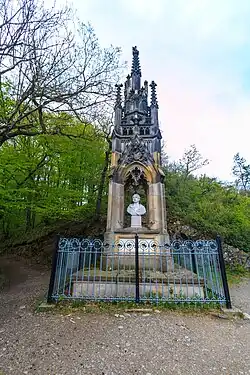 - Po vzniku Československé republiky v roce 1918 byla busta svržena ze stráně kladenskými radikály, které vedl agitátor a pozdější komunistický poslanec Alois Muna. V dubnu 1928 byla opět umístěna pod baldachýn, avšak dvanáct křivoklátských politických stran a spolků sepsalo petici, aby byla zase odstraněna. To městské zastupitelstvo odmítlo, přesto byla v roce 1928 opětovně stržena, tentokrát však tajně a v noci. Definitivně byla po široké osvětě a zásahu Státního památkového úřadu v Praze umístěna zpátky na své místo 8. června 1929. Od pomníku je vyhlídka na hrad.