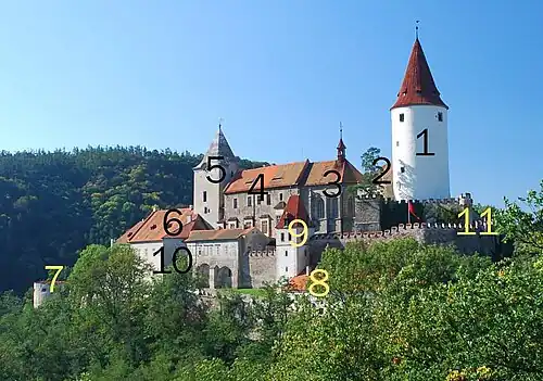 - ↑ KUKAL, Zdeněk, a kol. Hrady Čech a Moravy: z čeho jsou a čem stojí. Praha: Grada, 2010. 304 s. ISBN 978-80-247-3745-4. Kapitola Tváře krajiny s hrady, s. 110–111.