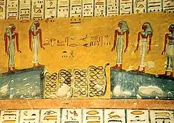 Hrobka je většinou neporušená a je zdobena výjevy z knih Litanie na Rea, Egyptská kniha mrtvých, Amduat a dalších. Je druhá největší v počtu nástěnných maleb v Údolí králů (po KV9).
