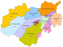 Kabardsko-Balkarsko se člení na 3 městské okruhy a 10 rajónů.