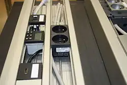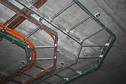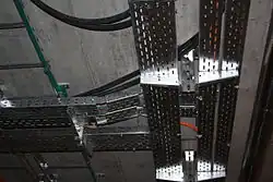 - na tzv. Niedax lišty – krátké kusy plechového profilu, který je připevněn na svislou stěnu, do profilu jsou vloženy úchytky, mezi které se vkládají kabely.