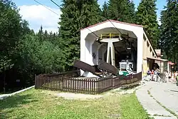 ![]() Kabina lanové dráhy opouští dolní stanici | |