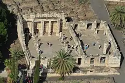 - synagoga se sloupovým nádvořím, dostavená ve 4.- 5. století n. l. na základech starší synagogy, jedna z nejvýznamnějších antických architektonických památek této doby v Izraeli; podle bohaté architektonické výzdoby stavěná pravděpodobně za podpory římského císaře Juliána[1]