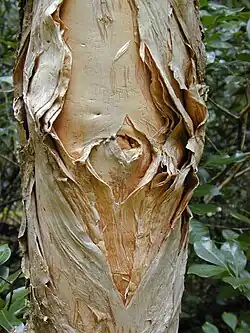 Papírovitě odlupčivá kůra druhu Melaleuca quinquenervia, od níž je odvozen lidový anglický název „paperbark“
