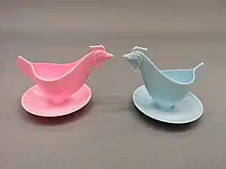 V NDR se v 70. letech 20. století rozšířily barevné plastové kalíšky na vajíčka ve tvaru slepic. Výrobcem těchto kalíšků byla firma Sonja Plastic.[5][6] Původně se tyto kalíšky vyráběly v bílé, pastelově žluté a pastelově modré barvě, ale později byly přidány i další barvy.[5]