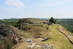 Nad přístupovým opevněním se nachází hradní jádro rozdělené do několika výškových úrovní. Na druhou bránu se napojovalo vnější opevnění severozápadní strany jádra. Tvořila ho hradba široká v dochované podobě nejméně 3,7 metru a příkop na vnitřní straně. Z hradby se dochoval pouze val.[32] Podobné vnější opevnění se nacházelo také na jihovýchodní straně hradního jádra.[33]