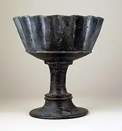 - dvouuchý, latinsky calix ansatus (antický, raně středověký), sváteční, vyobrazený například při Melchisedechově oběti na mozaice ze 6. století v San Vitale v Ravenně. Dochoval se také v pokladu St. Denis v Paříži.