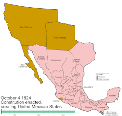 Po vyhnání nepočetných indiánských kmenů se území Kalifornie stalo severní výspou španělské říše na severoamerickém kontinentu. Kalifornie spadala pod místokrálovství Nové Španělsko. Z této kolonie vzniklo roku 1821 Mexiko (Spojené státy mexické) a jedním z jeho teritorií byla i Alta California. V letech 1846–1848 proběhla mexicko-americká válka, po níž bylo území historické Kalifornie rozděleno mezi oba státy. Severní (americká) část byla roku 1850 rozdělena mezi státy Kalifornii a teritoria Nové Mexiko a Utah, zatímco jižní (mexická) část tvořila až do roku 1930 jeden celek, který byl téhož roku rozdělen na dvě teritoria, později přeměněná v mexické státy.