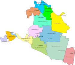 Kalmycko se člení na jedno město republikového významu a 13 rajónů.