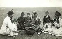 - ↑ ПАЛЬМОВ, Н. Общие сведения по истории, быту, экономике, материальной культуре и современному состоянию приволжских калмыков. [s.l.]: Этнографический очерк, 1928. Dostupné v archivu pořízeném dne 2011-05-13. (rusky) Archivováno 13. 5. 2011 na Wayback Machine.