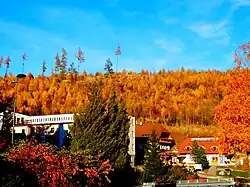 Pohled z vrcholu kalvárie na centrum Starého Smokovce