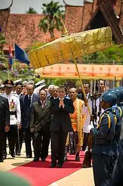 - ↑ CONSTITUTION OF THE KINGDOM OF CAMBODIA [online]. Office of the Council of Ministers, 25 January 2017 [cit. 2019-09-04]. Dostupné v archivu pořízeném z originálu dne 19 August 2017.
