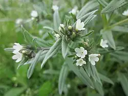 - ↑ a b c JOHNSON, Ivan Murray. Flora of China: Buglossoides arvensis [online]. Missouri Botanical Garden, St. Louis, MO & Harvard University Herbaria, Cambridge, MA, USA [cit. 2024-05-02]. Dostupné online. (anglicky)