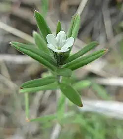 - ↑ a b KELLEY, Ronald B. The Jepson Manual, Vascular Plants of California: Lithospermum arvense [online]. Jepson Flora, University of California, Oakland, CA, USA [cit. 2024-05-02]. Dostupné online. (anglicky)