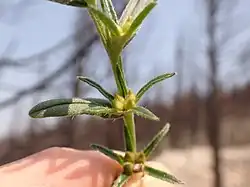 Lodyha je nejčastěji jednoduchá nevětvená, po celé délce hustě přitisklé chlupatá, zelená až nafialovělá a střídavě porostlá přisedlými vytrvalými celokrajnými listy. Spodní listy bývají obkopinaté, dlouhé 8 až 12 cm a široké 1,5 až 2,5 cm, horní mají podlouhlý tvar, bývají dlouhé od 2 po 5 cm a široké od 0,5 1 cm. Listy jsou po okrajích celistvé, na vrcholu jsou tupé až špičaté, mají výraznou střední žilku a oboustranně jsou odstálé chlupaté.
