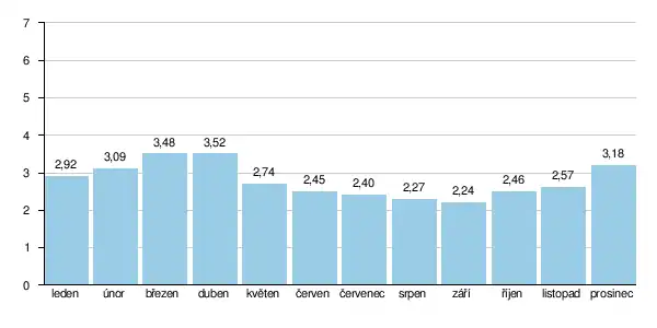Průměrné měsíční průtoky Kamenice (m³/s) ve stanici Hřensko:[2]