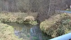 Na spodním okraji u křižovatky silnic Zákupy – Kamenice – Nové Zákupy se vlévá po 3 km svého toku zleva do říčky Svitavky na jejím 9,2 říčním kilometru[2] v nadmořské výšce 265 m.
