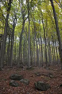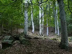 Bučiny asociace Asperulo-Fagetum (květnaté bučiny) zaujímají 30 % plochy rezervace. Pokrývají hlavně svahoviny, kde je patrný vliv čediče, podloží tedy není tak kyselé.[4] Tyto bučiny se obvykle vyskytují na trvale provlhčených půdách s vyšším obsahem živin a dobrou humifikační schopností. Porost, kde převládá buk lesní, je dobře zapojený, bylinné patro je bohatší a vícevrstevné. [10]