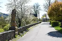 Na začátku mostu je umístěno sousoší Rozloučení s Pannou Marií, jejichž předpokládaným autorem je třebovský sochař J. Pacák. Sousoší pochází z roku 1722. Mělo být součástí křížové cesty z farního kostela na Křížový vrch.