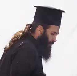 - V řecké tradici nosí mniši jednoduchý černý kalimaukion, zakrytý černým závojem (epanokalimaukion), ale vysvěcení duchovní, (jak ženatí, tak mniši) nosí kalimaukion s dýnkem rozšířeným do širokého okraje. Klášterní diakoni (hierodiakoni) si závoj snímají, když se oblékají na bohoslužby, ale klášterní kněží (hieromoni) ne. Řeholnice v řecké tradici běžně nosí pouze závoj.