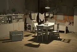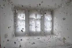 Opuštěný byt proměněný v instalaci levitujících předmětů, popsaných zdí, vzpomínek a snů. Praha, Myslíkova 9, 2009.[5][6][7]
