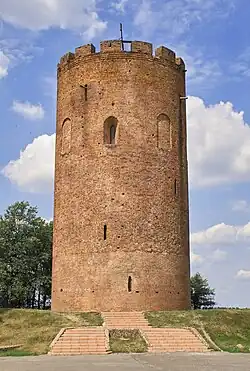 Věž je postavena z červených cihel na kruhovém půdorysu o průměru 13,5 m s tloušťkou stěny 2,5 m a s výškou 30 m. Věž je završena masivním cimbuřím. Stěny veže mají otvory s několika vysokými a úzkými mezerami. Pozůstatky věže jsou obloženy žebrovou klenbou, na jejich místě byly dřevěné ochozy na obranu. Interiér věže byl rozdělen dřevěnými mosty na pět podlaží. Od třetího patra vedou uvnitř cihlové zdi schody. Věž je charakteristická románským slohem s prvky rané gotiky. Sloužila jako hlavní hradní vež, nejvíce opevněná část hradu.