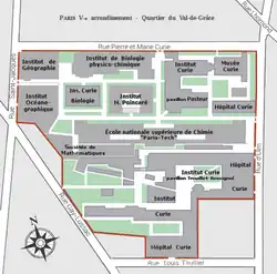 Kampus Sorbonne Université (nástupkyně Univerzity Paříž VI) zahrnuje Institut Curie (zahrnující Institut du radium, nyní Musée Curie a pavilóny Pasteur a Trouillet-Rossignol nemocnice Curie), Institut de biologie physico-chimique, který je součástí CNRS, École nationale supérieure de chimie de Paris, která je součástí UPSL, Institut Henri Poincaré, Geografický ústav, Oceánografický ústav, Fondation sciences mathématiques de Paris, Société mathématique de France a Société de mathématiques appliquées et industrielles.