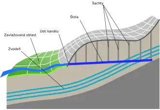 Kanáty využívají toho, že se v horách díky mělkému nepropustnému podloží nachází hladina podzemní vody výše, než oblasti s plošším terénem a přívětivějším klimatem v podhůří. Základem kanátu je vodorovná štola. Ta se ve své horní části nachází ve zvodni a jímá její vodu a dále po proudu pak vede tuto vodu samospádem k ústí kanátu. Štola se buduje ve velmi malém sklonu (1:1500–1:1000), aby voda proudila velmi malou rychlostí a nerozrušovala tak ostění kanátu. Jímací část se často umisťuje do náplavových kuželů, kde je zároveň mocná vrstva propustných sedimentů a vysoká hladina podzemní vody.