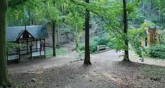 Při rozcestí lesních cest v sedle (kdysi nazývaném Hammerberg) pod Výšinou přátelství stávala hranolová barokní kaple Ecce homo (též nazývaná Hammerkapelle). Uvnitř bývala barokní vyřezávaná plastika Ecce homo.[1][2][3]