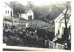 Tím byla slavnost ukončena. V kapličce byla vykonána první pobožnost křížové cesty a lidé se vydali do místního hostince a zahrady pana starosty Norberta Fajgeho kde pokračovala zábava.