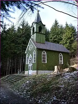 Obrázky, zvuky či videa k tématu Ticháčkova kaple na Wikimedia Commons - Dřevěná kaplička v Ticháčkově lese