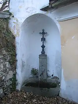 Kaple je vestavěna do stráně zpevněné na severní straně kamennou zídkou. V ní je vyhloubena půlkruhová koncha s kamenným podstavcem a litinovým křížem s ukřižovaným Kristem. Pod podstavcem vytéká pramen vody do kamenné nádržky.
