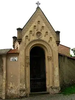 Prostá drobná stavba z roku 1860 stojí na místě obytného domu zbořeného v první polovině 19. století. Za zdobnou mříží se skrývá malý prostor s oltáříkem a sádrovou kopií cenného gotického reliéfu Panny Marie Opatrovnice z 15. století.