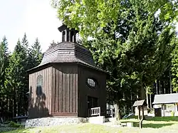 - ↑ a b c POLÁŠEK, Jaromír. Dřevěné kostely a kaple Moravy a Slezska. 1. vyd. Český Těšín: Agave, 2001. 381 s. Dostupné online. ISBN 80-86160-49-1, ISBN 978-80-86160-49-8. OCLC 50676464 S. 292–295.