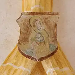 Na stěnách je deset světících (konsekračních) křížů. Dva z původních dvanácti jsou zakryty později vestavěnou kruchtou.