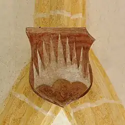 - erbovní galerie na klenbě chóru chrámu svaté Barbory v Kutné Hoře, kolem roku 1500.[17]