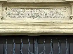 U dřevěného schodiště v prvním patře věže je pamětní deska s českoněmeckým textem, připomínající návštěvu olomouckého arcibiskupa Bedřicha z Fürstenberku 24. září 1862. Nad vchodem do kaple je vytesán nápis z roku 1692 s textem: 1692 CHRAM PANE PRZYSTAVEN ZA REGIROWANI CISARZE RZIMSKIHO LEOPOLDA I - PODKOMORZIHO PANA IANA MAX KOBILKY Z KOBILIHO NAKLADEM OBECNIM. MAGISTRAT BIL PRIM CI M BERAVNSKY - I PODIVINSKI - M PIWODA - I LVROWSKI - M STILER - I MVCHNICKY - W BOVCHAL - M FIALA - W SKRLA - N ZDIANSKY - MAHEIN - I BARTELOT - RICH M - DA- PO.[p 1]