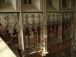 Pod okny na severní stěně jsou výklenky (sedilia), které nejsou jenom ozdobnými nikami pro sochy světců, ale místy určenými pro duchovní. Naznačují, kde kdysi byla výška původní podlahy. Mezi válcovými příporami se jich nachází celkem 12. Jsou částečně zapuštěny do zdi a skládají se z trojlistů, doplněných vimperky zdobenými jednoduchými listy zakončeny bobulemi, které spolu se stylizovanými kříži dodávají sedíliím plasticitu. Společně se zaklenutím se jedná o nejhodnotnější gotické prvky nacházejících se v kapli.