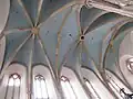 Podél celého prostoru kaple obíhá obnovená podokenní římsa. Žebra sbíhají do oblých klenebních přípor, které jsou přerušeny hlavicemi a ukončeny restaurovanými konzolami. Přípory mají kalichovité hlavice, které jsou zdobeny různým vegetabilním dekorem. Interiér kaple je zaklenut třemi poli žebrové klenby. Kněžiště (presbyterium) má jedno obdélníkové pole paprskovitě zaklenuto. Žebra se opírají o válcové přípory s kalichovitými hlavicemi a sbíhají se do svorníku. V zaklenutí se nacházejí celkem tři svorníky. První umístěný nad chórem nese erb s nápisem: Renowarto 1872. Na svorníku nad kněžištěm se pak nachází erb. Prostřední svorník je bez ozdob.
