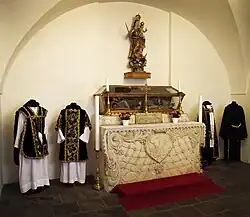 Mistr Vaněk rovněž navrhl barokizující štukový reliéf s kapucínským znakem, který zdobí zděnou menzu v kapli hrobky. Menza přiléhá k původnímu baroknímu oltáři, na nějž byl kolem roku 1970 umístěn rakvový relikviář křesťanky Klemenciány.
