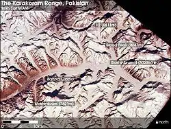 Karákóram[1] (urdsky سلسلہ کوہ قراقرم, transliterováno Selsele-ye Kūh-e Qarāqoram, čínsky 喀喇昆仑山脉, pinyin Kālǎkūnlún Shānmò, český přepis Kcha-la-kchun-lun šan-mo) je druhé nejvyšší pohoří na světě – dosahuje výšky 8611 m (K2). Rozkládá se v pákistánském Kašmíru, Indii a Číně na ploše asi 90 000 km². Táhne se 500 km dlouhým obloukem severně od horního toku Indu rovnoběžně s Himálajem a představuje spojení Himálaje s Pamírem a Kchun-lun-šanem. Je součástí alpsko-himálajského systému.