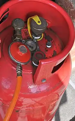 Plynové rozvody v karavanech musí být vybavené regulátorem tlaku plynu, mohou mít externí vývod pro napájení venkovních plynových spotřebičů a pokud má karavan více, než jednu plynovou láhev, může být plynový rozvod doplněný o automatický přepínač odběru plynu mezi lahvemi.